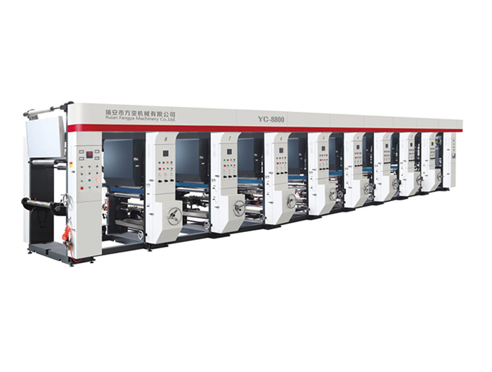 This kind of machinery is suitable for multi-color gravure printing of various roll materials,plastics films and paper sheets.No shaft-mounted version,pneumatic scraper,external heating,heat drying cycle,air-cooled cooling unit,centralized waste discharge,double-work station for unwinding andrewinding,main motor frequency speed regulating device that it ensures